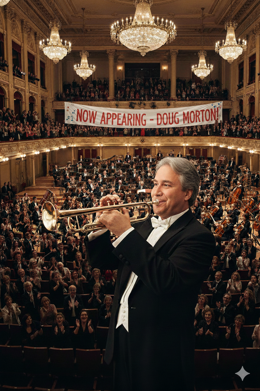Since moving to the Bay Area, Morton has performed with the Berkeley, Sacramento, Monterey, and California symphonies, among others, including being featured with the Santa Rosa, Monterey, Bay Area Concerto and Concord Pavilion orchestras as soloist, and has been invited to perform at many summer music festivals. He played principal trumpet with the Santa Rosa Symphony for 30 years. Morton continues to pursue his interests in music of all kinds, performing with such diverse groups as the Jazz Composer's Orchestra, CARMA, Mental Floss, The Grateful Dudes, the Clubfoot Orchestra, SF Mime Troupe, Beach Blanket Babylon, Del Sol, Mood Swing Orchestra, and the Bohemian Club Jinks Band, among many others. He gigs actively on the piano, including a long-term engagement with a trio at the Panama Hotel, and now plays semi-regularly at the Healdsburg Hotel.